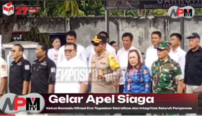 Apel siaga dihadiri Forkopimda, Ketua KPU Minsel dan jajaran pengawas di tingkat kecamatan dan kelurahan/desa.