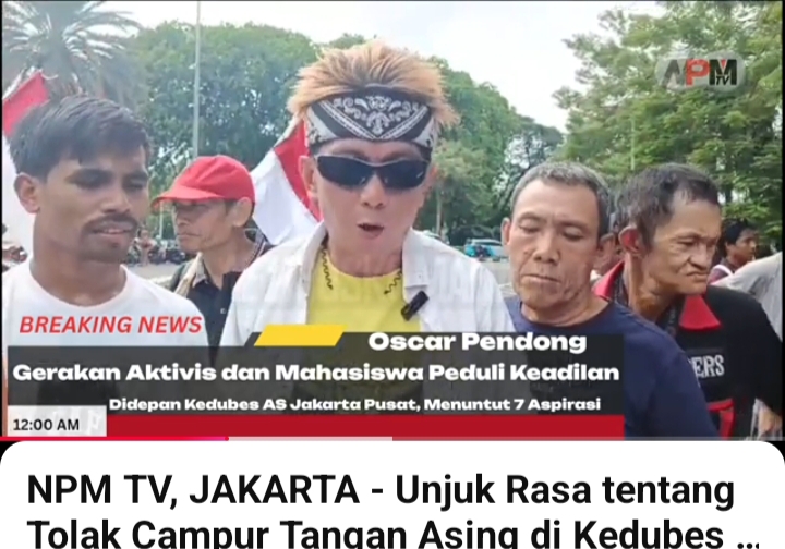 NPM TV, JAKARTA – Gerakan Aktivis dan Mahasiswa Peduli Keadilan ( GAMPK) menggelar unjuk rasa di depan Kedutaan Besar Amerika Serikat (Kedubes AS), Jakarta Pusat, Rabu (6/11/2024). Aksi tersebut diikuti oleh Masyarakat yang berjumlah lebih dari 50 orang. Massa menyerukan penolakan terhadap campur tangan Non-Government Organisasi (NGO) AS pada Proyek Strategis Nasional (PSN) dan Urusan Papua di Indonesia.