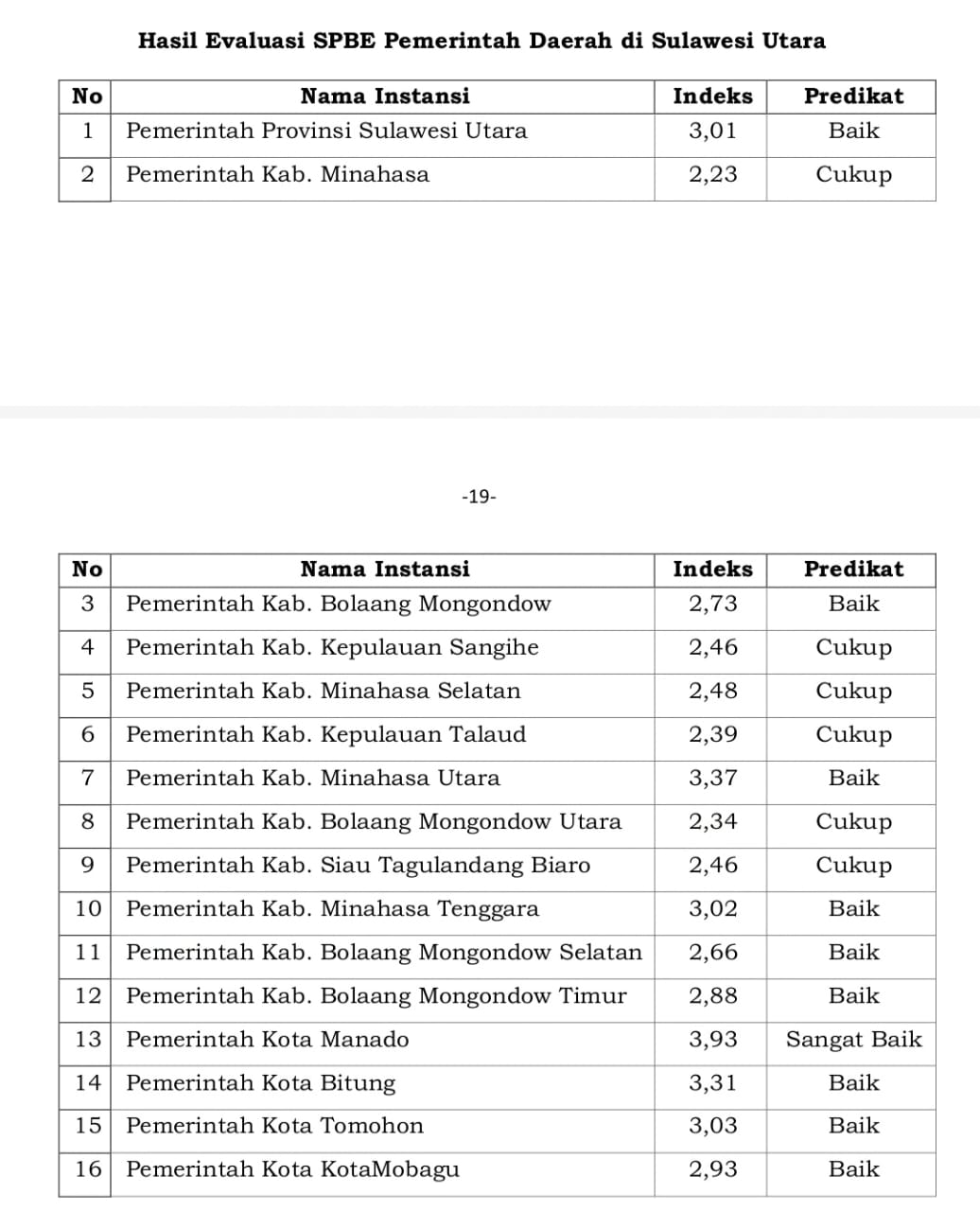 MINUT,NPM TV -Berdasarkan hasil evaluasi sistem Pemerintahan berbasis Elektronik atau SPBE dari kementerian PAN dan RB pemerintah Kabupaten Minahasa Utara menuai prestasi dari ranking 6 dgn indeks 2,68 sesulut tahun 2023 menjadi ranking 2 sesulut dgn indeks 3,37 tahun 2024 predikat baik dibawah kota Manado