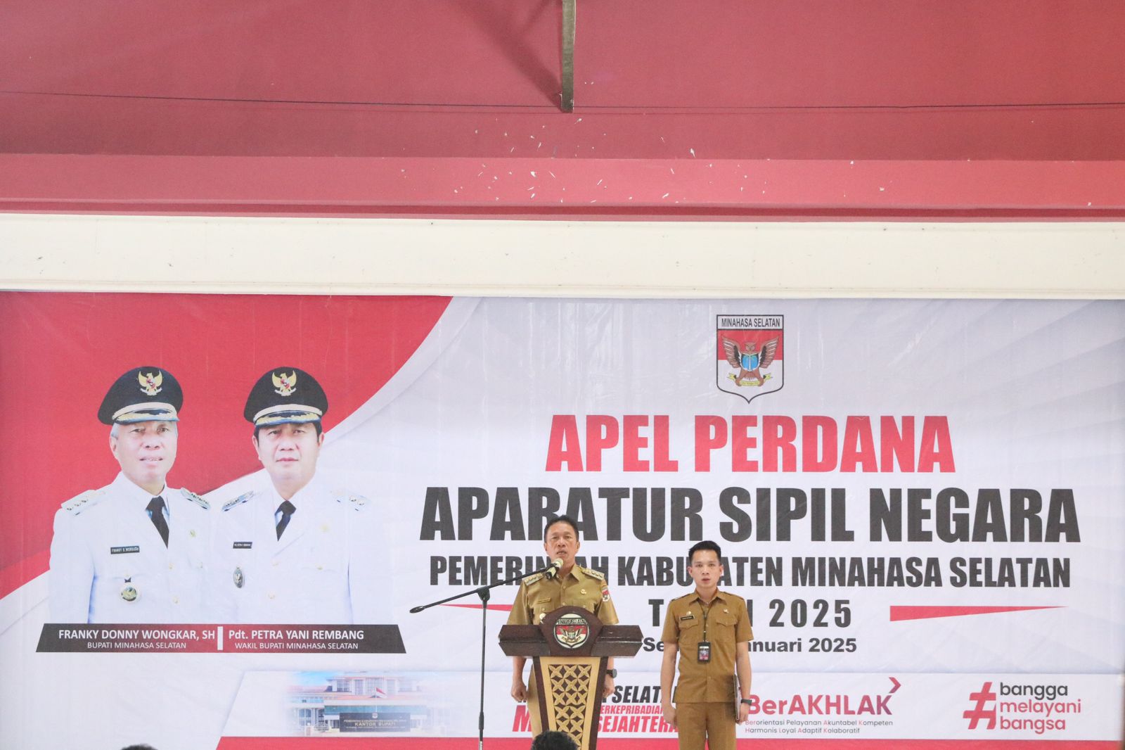 MINSEL, NPM TV -Bertempat di Aula Waleta Kantor Bupati, Bupati Minahasa Selatan Franky Donny Wongkar, SH memberikan arahan kepada seluruh Peserta Upacara, pada Senin (6/01/2025).