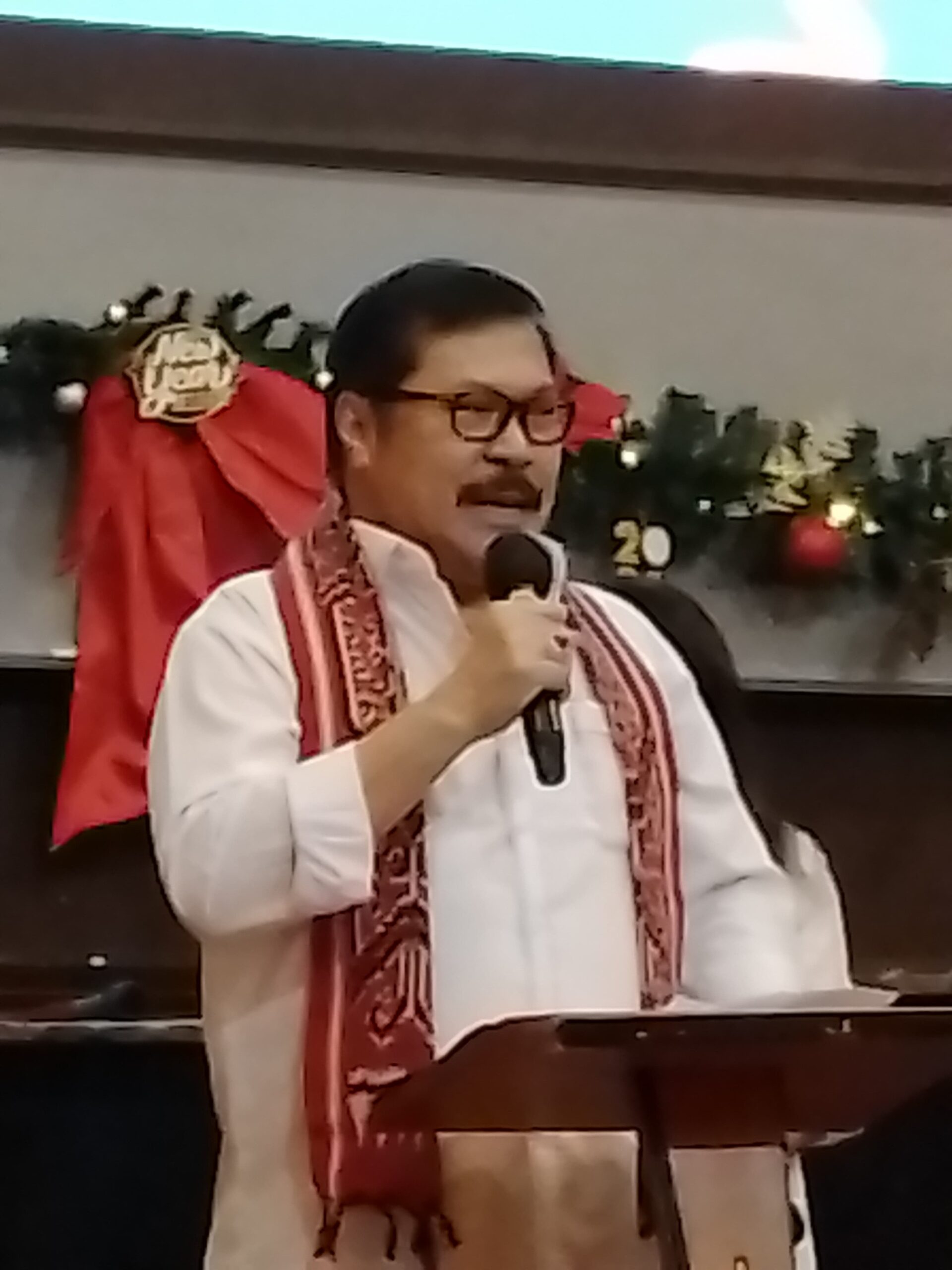 Ibadah Natal dipimpin oleh Pdt. Alex Sarendatu dengan tema “Damai sejahtera-Ku Kuberikan kepadamu, dan apa yang Kuberikan tidak seperti yang diberikan oleh dunia kepadamu. Jangan gelisah dan gentar hatimu” (Yohanes 14:27).