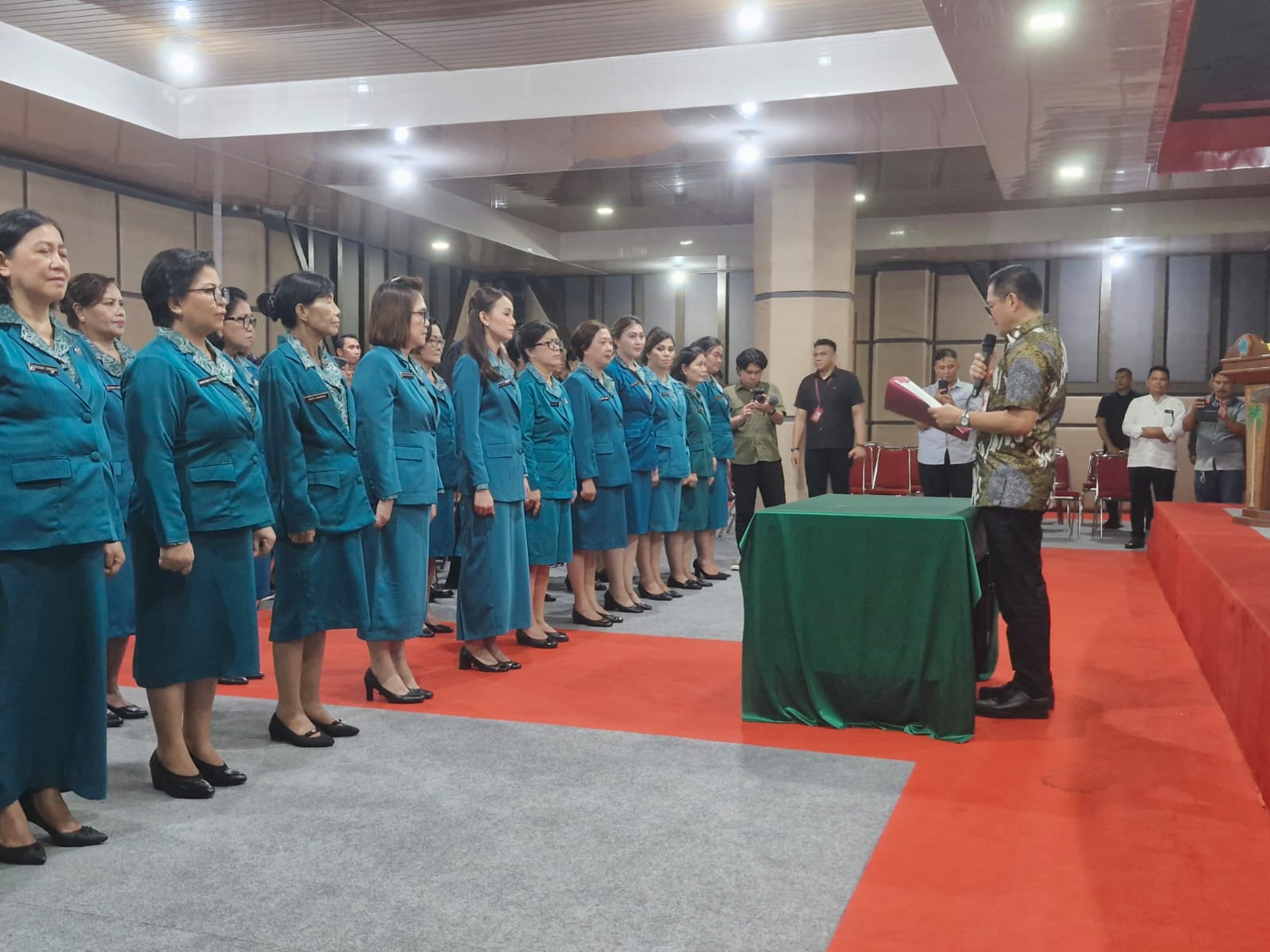 Pengukuhan berlangsung hikmat dan berjalan lancar.Tampak dalam pelantikan tersebut Sekda Minut, Novly G Wowiling, para Asisten, Kepala OPD, dan Camat se-Kabupaten Minahasa Utara. ( TEV )