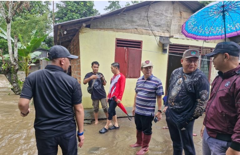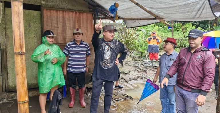 Dilokasi kejadian Terlihat rumah warga korban banjir di desa Mapanget langsung memberikan bantuan oleh Wakil Bupati Minut Kevin Lotulung yang didampingi Sekda Minut Ir.novly Wowiling .MSi.